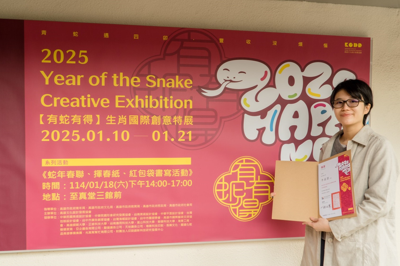 國立臺南大學藝術學院設計碩士班學生李嘉恩,在「2025有蛇有得生肖圖像設計比賽」大專組中,以創意作品「福蛇福袋」榮獲優選佳績。該作品以新年氛圍為主題,巧妙結合生肖文化與現代設計,呈現出可愛且充滿親和力的角色造型,深受評審青睞。此次比賽由高雄文化設計發展協會主辦,匯聚全國優秀設計,李嘉恩同學以作品的創新表現獲得肯定。