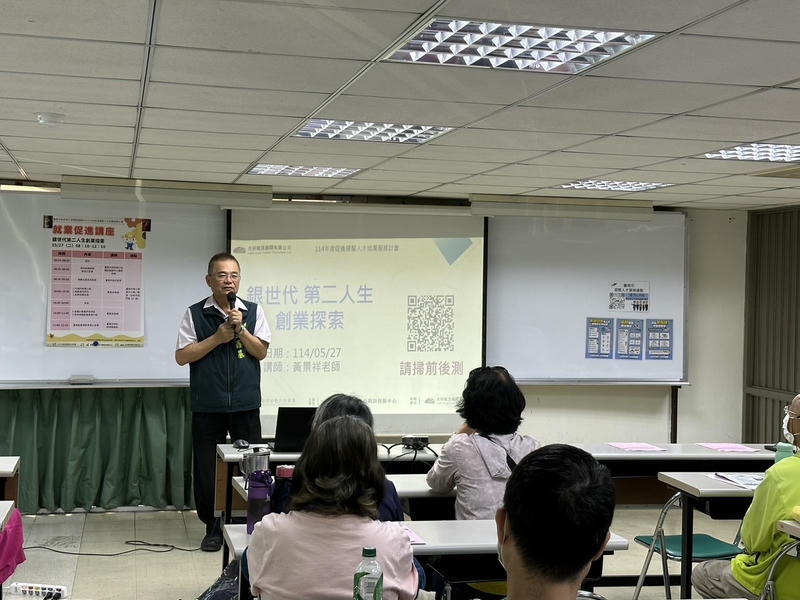為建構黃偉哲市長「希望家園」的施政願景,並協助銀髮族群開創第二人生,提升其創業思維與就業競爭力,臺南市銀髮人才服務據點於今(27)日在南門勞工育樂中心辦理就業促進講座,邀請到勞動部勞動力發展署創業顧問黃景祥老師與學員分享「銀世代第二人生創業探索」,吸引許多有志創業的銀髮民眾熱情參與,除了協助學員認識自身優勢,掌握創業方向,並針對創業計畫書的撰寫、政府相關資源的申請方式進行實務分享,幫助參加學員提升實戰能力。