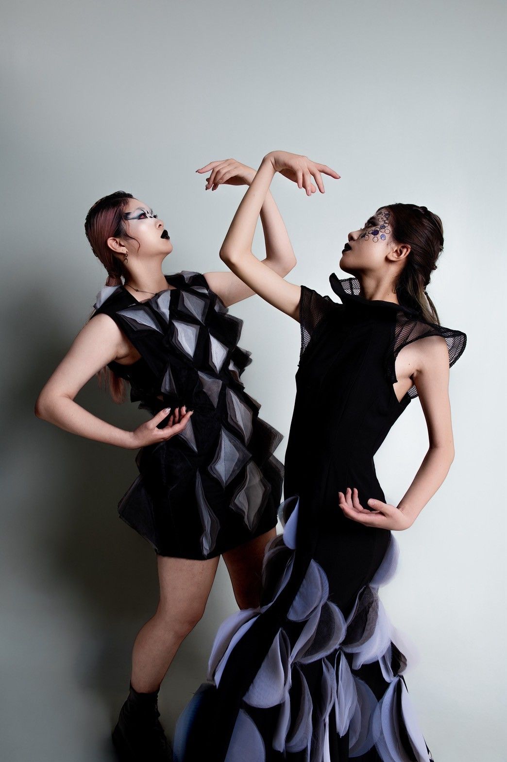 本屆畢展共集結64位大三學生、56組設計作品,經過初選與複選兩階段嚴格審查,最終選出25組作品、共30位學生入圍決賽展演。這些入選作品不僅展現服裝設計的技術深度,更融合敘事、影像與舞台表現,以服裝承載的未來敘事與自我構築。設計師們匠心獨運的系列作品,配合造型亮麗模特兒走秀,完美交織為一場融合視覺與概念的時尚藝術盛宴。《異度Cyber》將引領您,一同穿梭於現實與幻想之間,走進這場破格重構的異維時尚旅程。