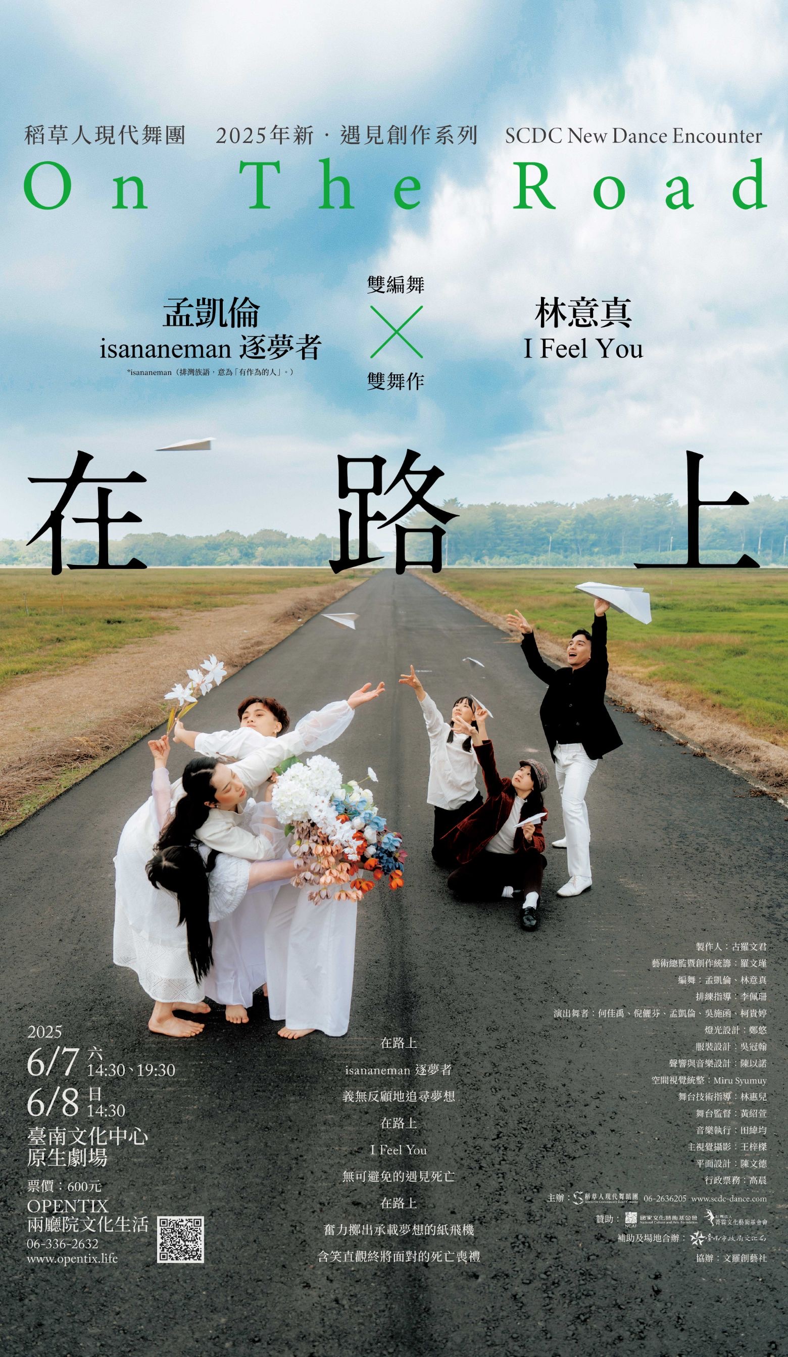 稻草人現代舞團2025年【新‧遇見】新生代舞蹈創作系列,即將於6月7日至8日在臺南文化中心原生劇場推出全新製作《在路上》,由舞團核心舞者孟凱倫與林意真擔任編舞,分別創作兩部獨立作品〈isananeman逐夢者〉與〈I Feel You〉。兩位編舞者透過對「夢想」與「死亡」的深層提問,以細膩舞蹈語彙,書寫當代年輕世代的生命旅程。