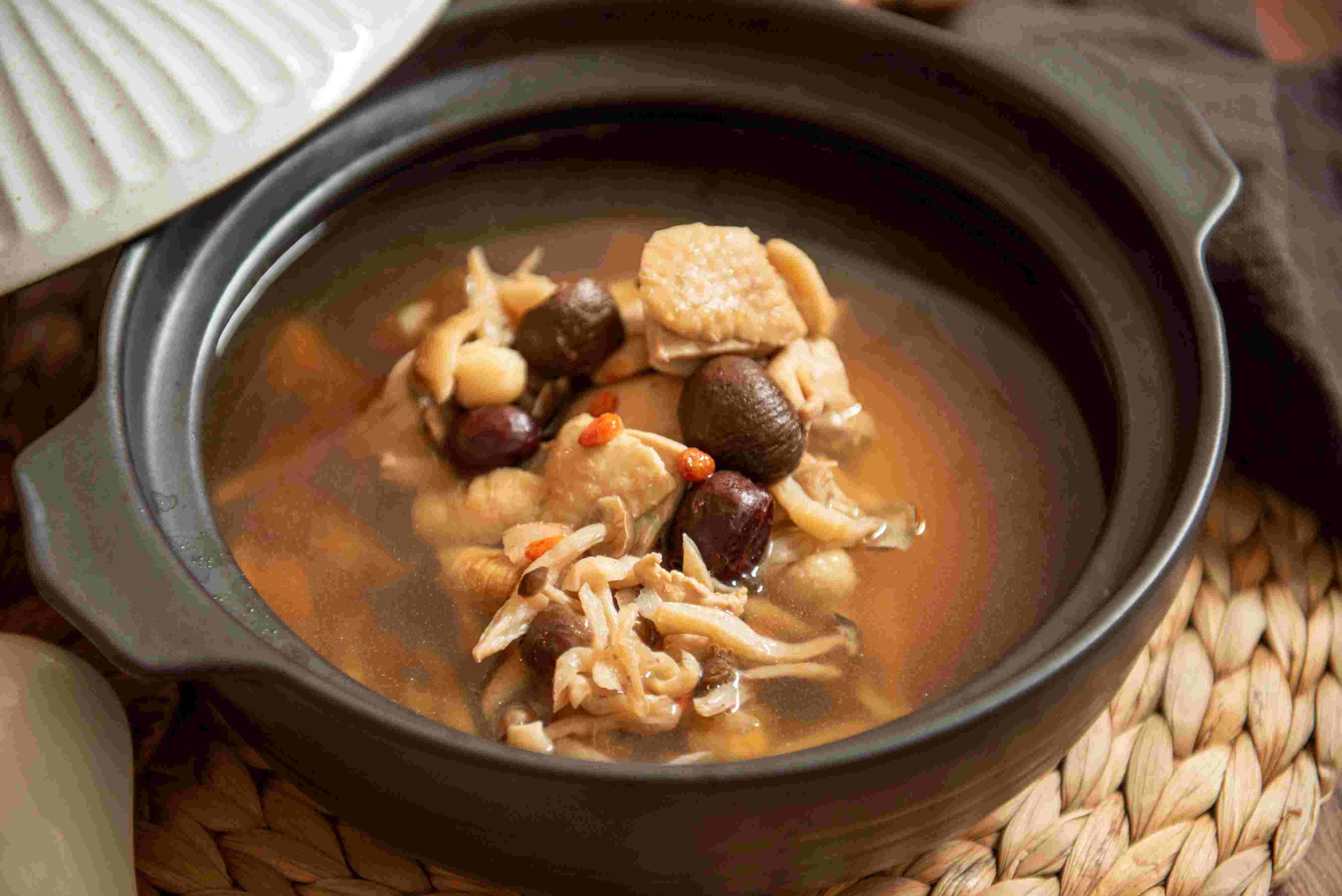 ▲ 多種中藥熬煮的黑蒜蕈菇燉雞湯,香濃又軟嫩