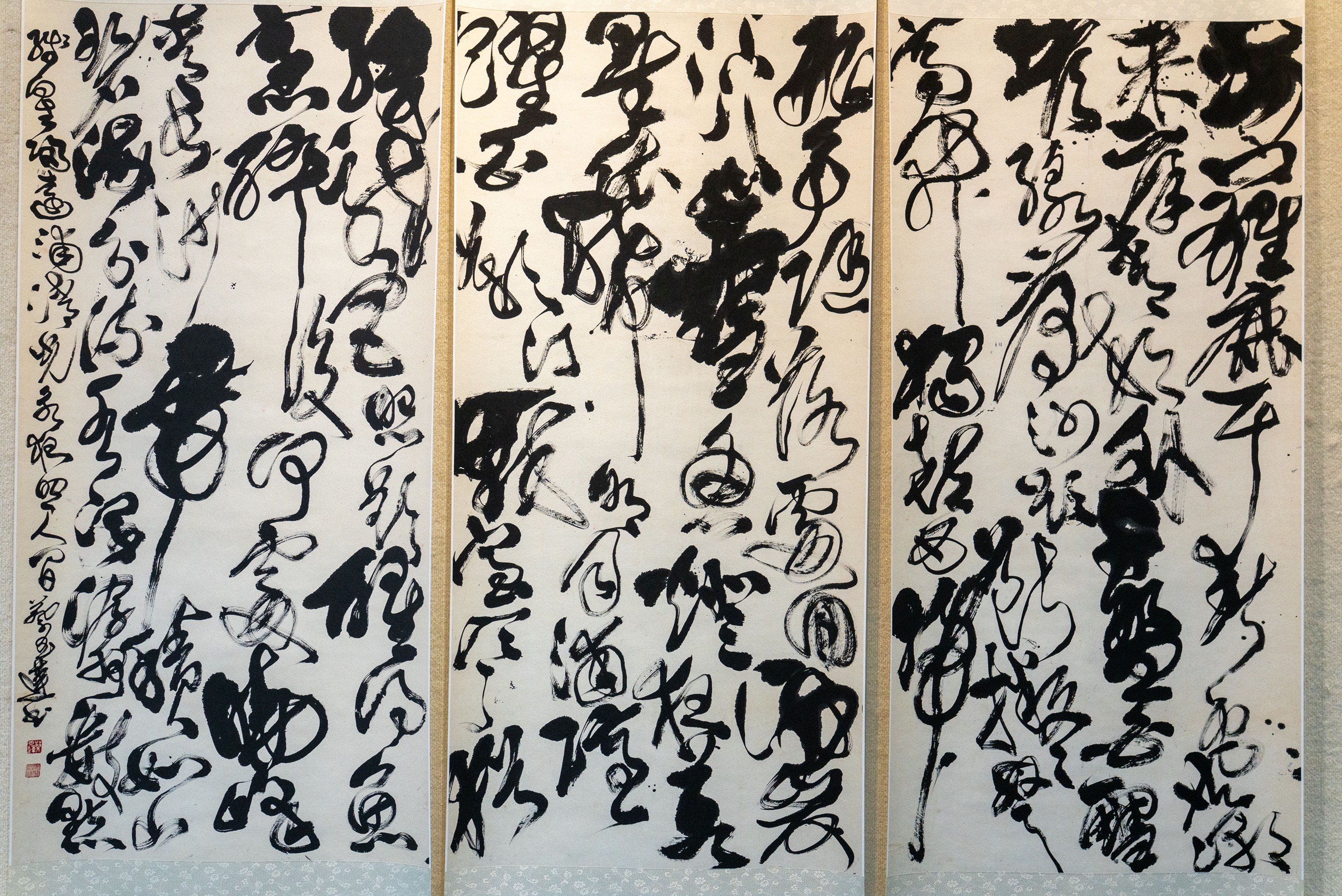 「臺南獎」得主分別為:書法類—蔡玉蓮《臺南古詩三首》,揉合古典詩意與現代美學,作品取材於描寫臺南地景的古詩,筆法奔放、墨色層次分明,於狂草與抽象之間展現極具速度感與空間感的書藝張力,體現深厚功底與當代視野的交會。東方媒材類—陳婕宜《繪夢》,結合卡漫風格與水墨技法,描繪夢境中的人物與象徵意象。面部神韻細膩,衣紋與背景花窗交織流動,蝴蝶意象隱喻靈魂轉化。作品細膩且具實驗性,展現東方語彙的當代表述。立體造型類—龍美君《毛巾系列-小被被》,以複合媒材詮釋童年安慰物「小被被」,巧妙運用蛋殼拼貼,象徵生命的誕生與脆弱。作品形式極簡卻細節豐富,情感深刻,從個人經驗延伸至社會情境,展現詩意與哲思並具的空間敘事。