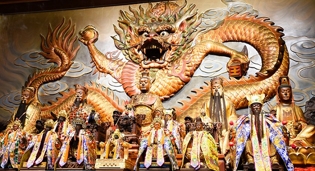 ▲ 鄭子寮福安宮內所奉之神像,有16尊出自陳啓村之手。(張耘書拍攝)