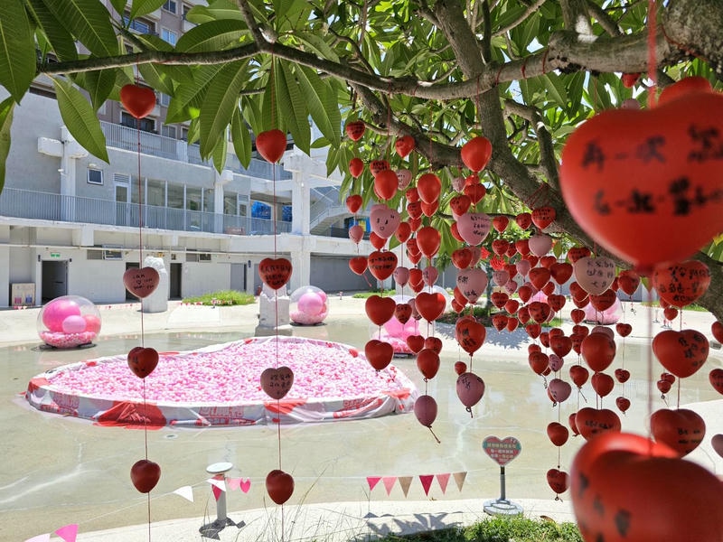 觀光旅遊局林國華局長表示,為延續民眾的祝福與紀念,觀光旅遊局近日陸續將許願民眾所寫的愛心球集中串接,懸掛於園區樹上,形成一串串紅色心願景象,讓參與者能在現場重新尋找當初許下的心願,增添一份溫馨感動。觀光旅遊局鼓勵尚未許願的朋友也能前來體驗扭蛋活動,獲得愛心球並寫下自己的願望,投入「愛情許願池」中,象徵將祝福寄託在這片幸福場域。