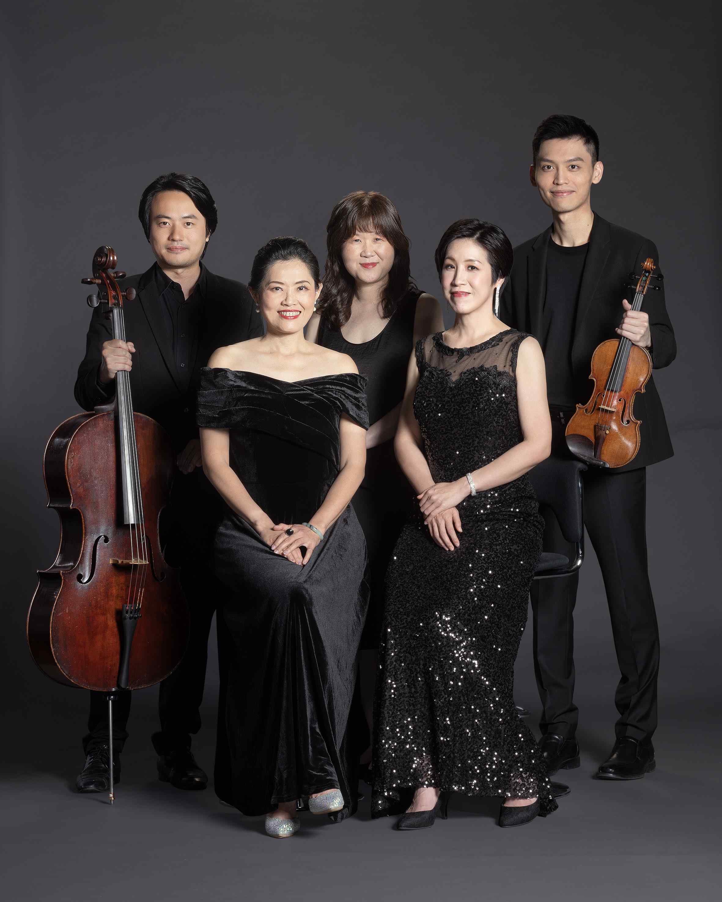 ▲ 2025奇美音樂節,邀請知名女高音黃莉錦(左二)、次女高音翁若珮(右二)、鋼琴家徐嘉琪(中)、小提琴家許軒豪(右一)、大提琴家李建樺(左一)一同演出「巴黎沙龍美好回眸」。圖-奇美博物館提供
