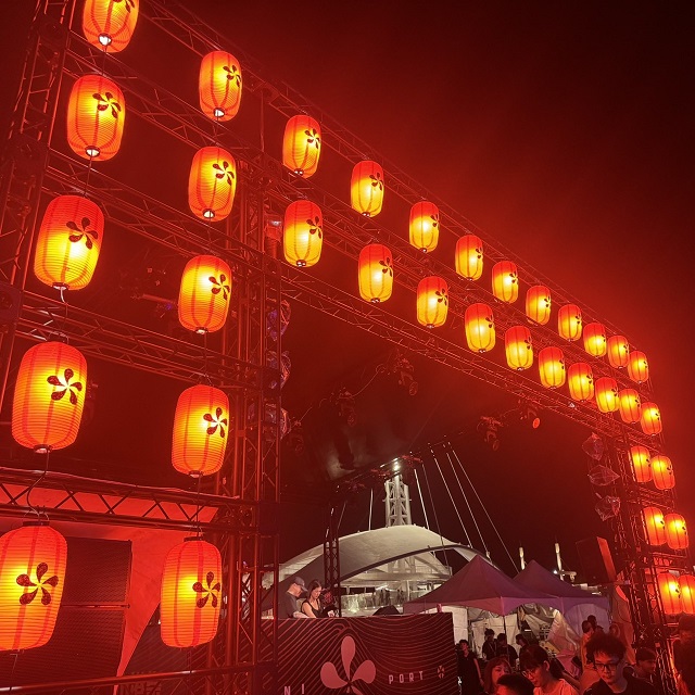 ▲ 2024年大港開唱「人生的音樂祭」舞台掛滿王睿誠的手繪燈籠。(苑輝燈籠提供)