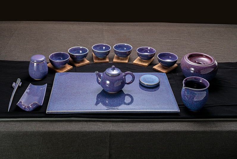 ▲ 日本王室尊崇紫色,黃怡文在京都傳統產業博物館展出全套鈞釉「紫氣東來」茶席作品