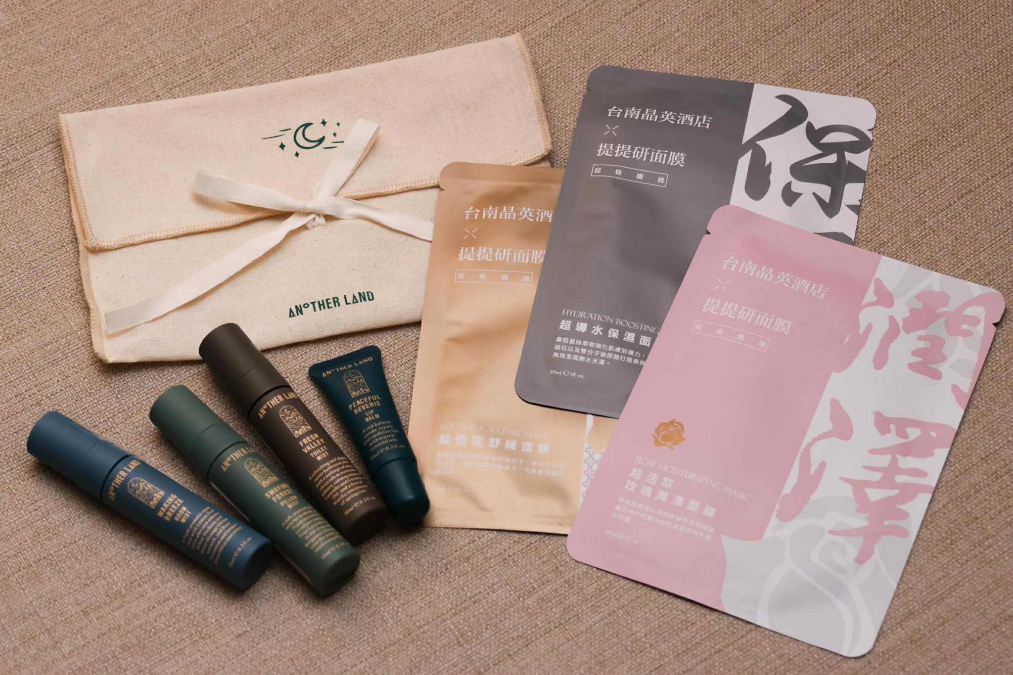 此外,週年慶的重頭戲莫過於「消費滿額贈」活動,凡於9月1日至30日期間,憑台南晶英開立之住房或餐飲發票,單日累積消費滿11,000元,即可於一樓櫃台兌換限量「提提研 x Another Land 體驗組」。內容包含TTM提提研保濕、舒緩與玫瑰潤澤面膜各乙片,以及Another Land隨機贈送的四款生活好物,包括護唇膏、空間噴霧、馬桶噴霧與枕巾噴霧等實用選品。好禮可累贈,數量有限、送完為止,兌換規則詳見官網說明。