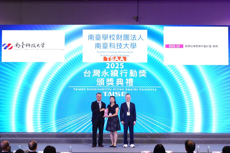 南臺科技大學「跨樂尬陣:南流西起共融藝起來」USR計畫團隊,深耕社會共融領域有成,繼今年四月獲頒第六屆《遠見》USR大學社會責任獎「在地共融組」楷模獎後,再次獲得高度肯定!日前,該計畫榮獲台灣永續能源研究基金會(TAISE)頒發「台灣永續行動獎」大學組「減少不平等」(SDG10)銅獎,由社會責任暨環境永續中心陳曉蓉中心主任代表受獎。這份榮譽為一路以來投入心力的師生帶來極大鼓舞,也證明了南臺科大持續發揮大學社會影響力的決心。