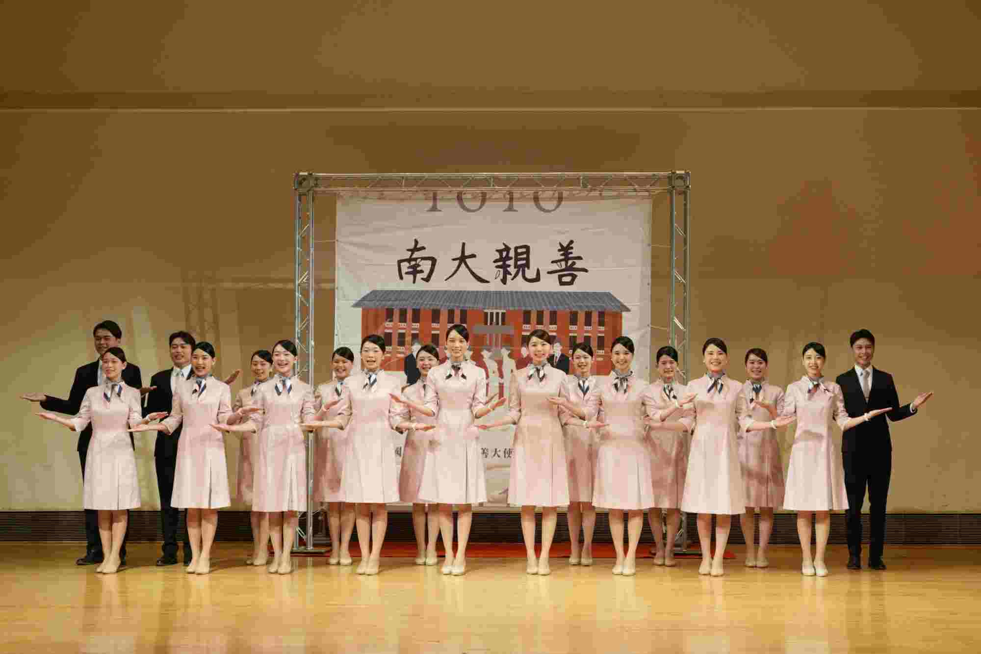 為迎接國慶任務,南大親善大使團隊自暑假起即投入多元且嚴謹的培訓,包括接待禮儀、美姿美儀、妝髮訓練、急救技能與性別意識培力等課程,全面提升團員的臨場應變與專業能力。記者會上,團員更以外語展示、情境演練與接待示範,展現訓練成果與南大團員的自信姿態。