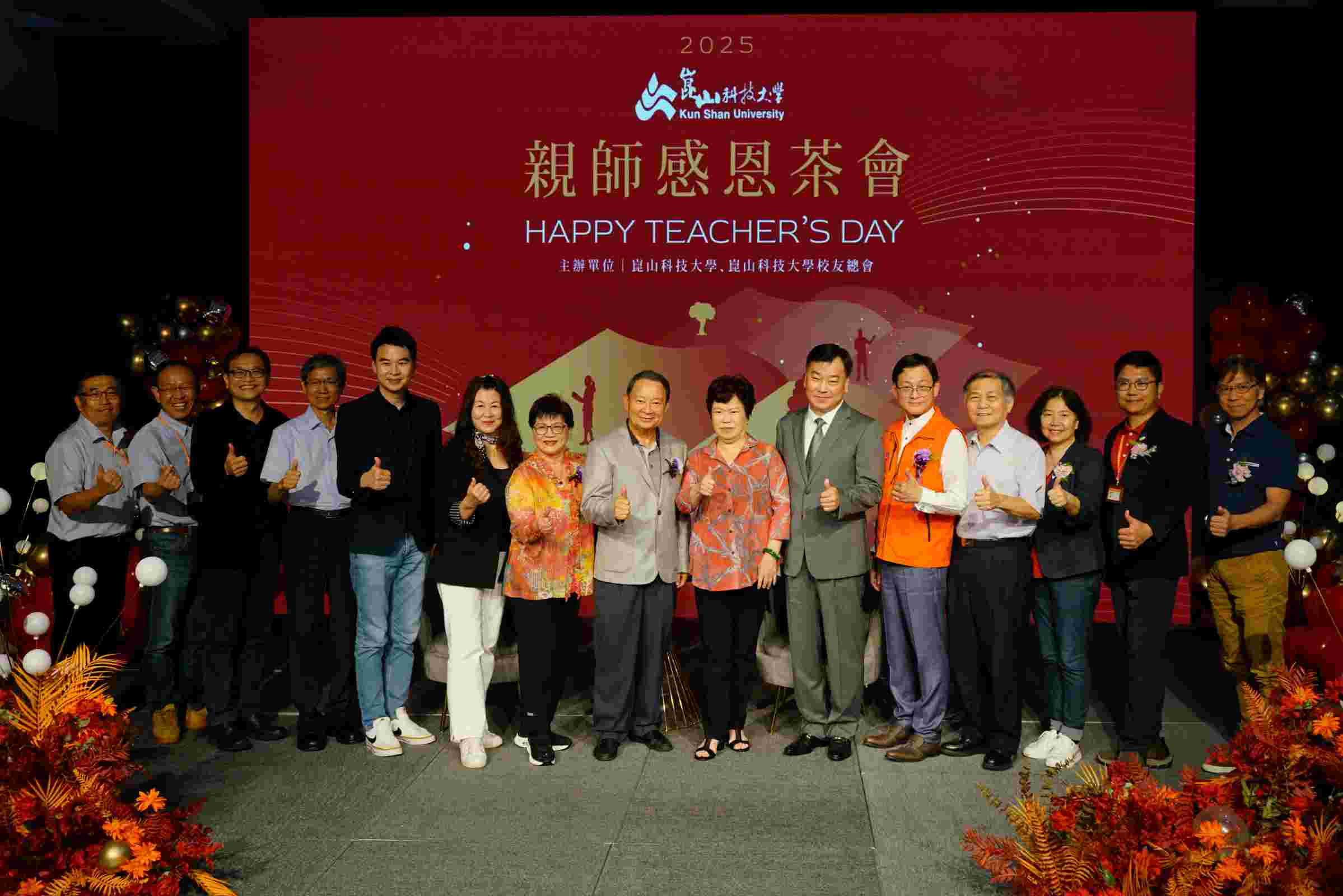 崑山科技大學攜手校友總會及各分會、系友會,於9月24日在時尚藝廊舉辦「教師節親師感恩茶會」,向全校教師致上最誠摯的敬意,活動現場匯集師長、校友與學生近百人共聚一堂,更有來自貝里斯、聖文森、聖克里斯多福、泰國、越南、巴拉圭、美國、印尼、菲律賓等國的外籍學生,一同參與敬茶活動,展現崑山科大的多元國際氛圍。