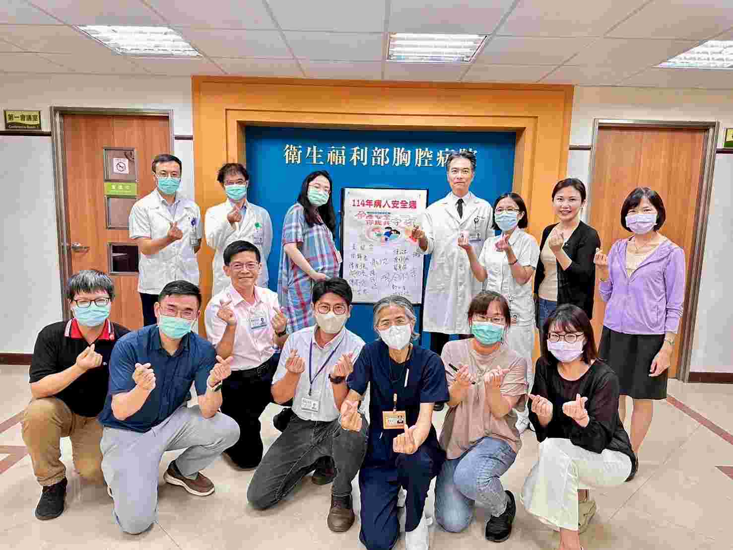 值此114年病人安全週之際,衛生福利部胸腔病院積極響應主題「齊心共守‧產兒安康」,呼籲全院同仁攜手提升孕產婦與兒童病人安全意識,為院內外的孕產、兒童健康共同努力。為展現推動決心,胸腔病院黃紹宗院長率先帶頭宣誓,親自邀集各單位主管及醫療人員共同進行承諾簽署活動,藉以表達全院上下一心,並強化全體人員對病人安全的重視與支持。