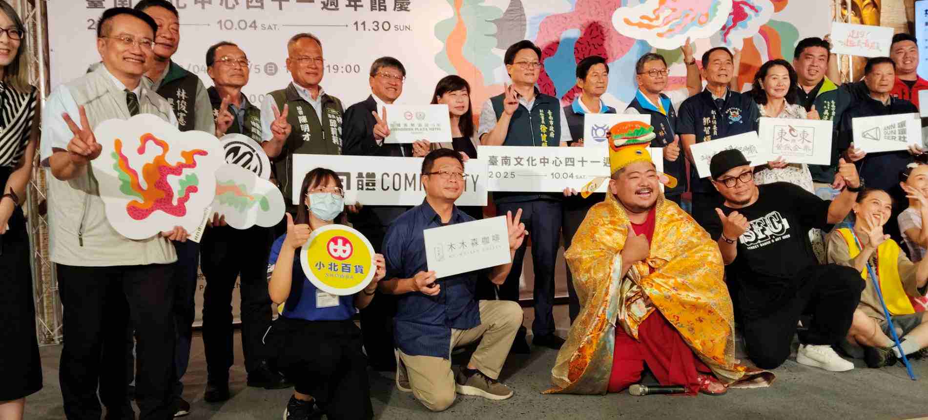 臺南市政府文化局專門委員方敏華在活動記者會致詞指出,臺南文化中心41歲了,在去年40不惑之年後,從此邁入另一階段,即將展開整建工程,他是南部重要的藝文場館,許多重要的節目及藝術家都曾在此展演,帶給市民美好的藝文饗宴。方敏華表示,41周年館慶活動以「共同體」為主題,邀請「小事製作 Les Petites Choses Production」策劃,中秋連假10月4日至10月5日下午2時隆重登場,串連演出、市集與解謎遊戲,邀請市民共同參與,與表演者即興互動,館慶期間共推出16檔演出,包括會員專屬體驗活動與系列劇場精選節目等,邀請市民共赴此一藝術饗宴。