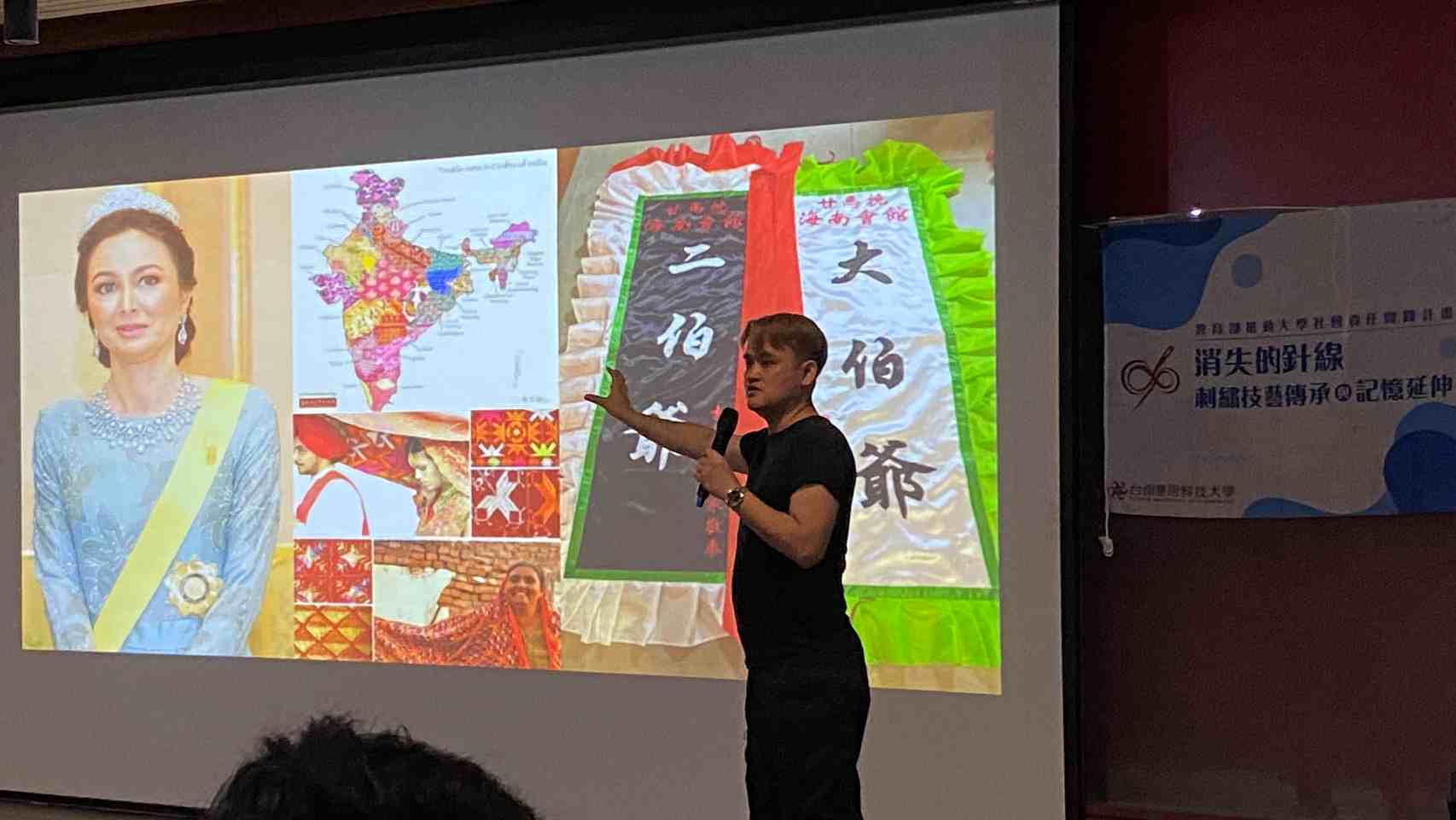 同日下午,〈消失的針線-刺繡技藝傳承與記憶延伸〉計畫團隊續辦「2025刺繡設計季」系列活動,特邀馬來西亞TSUBAKI STUDIO林傑總監以「針線之間:馬來西亞刺繡的藝術之美」為題,主講國際大師講座,分享刺繡文化在當代設計中的創新轉譯。林傑以設計人的觀點,探討傳統工藝如何融入當代生活與品牌思維,激發在場師生從文化紋理中重新思考設計的社會價值。