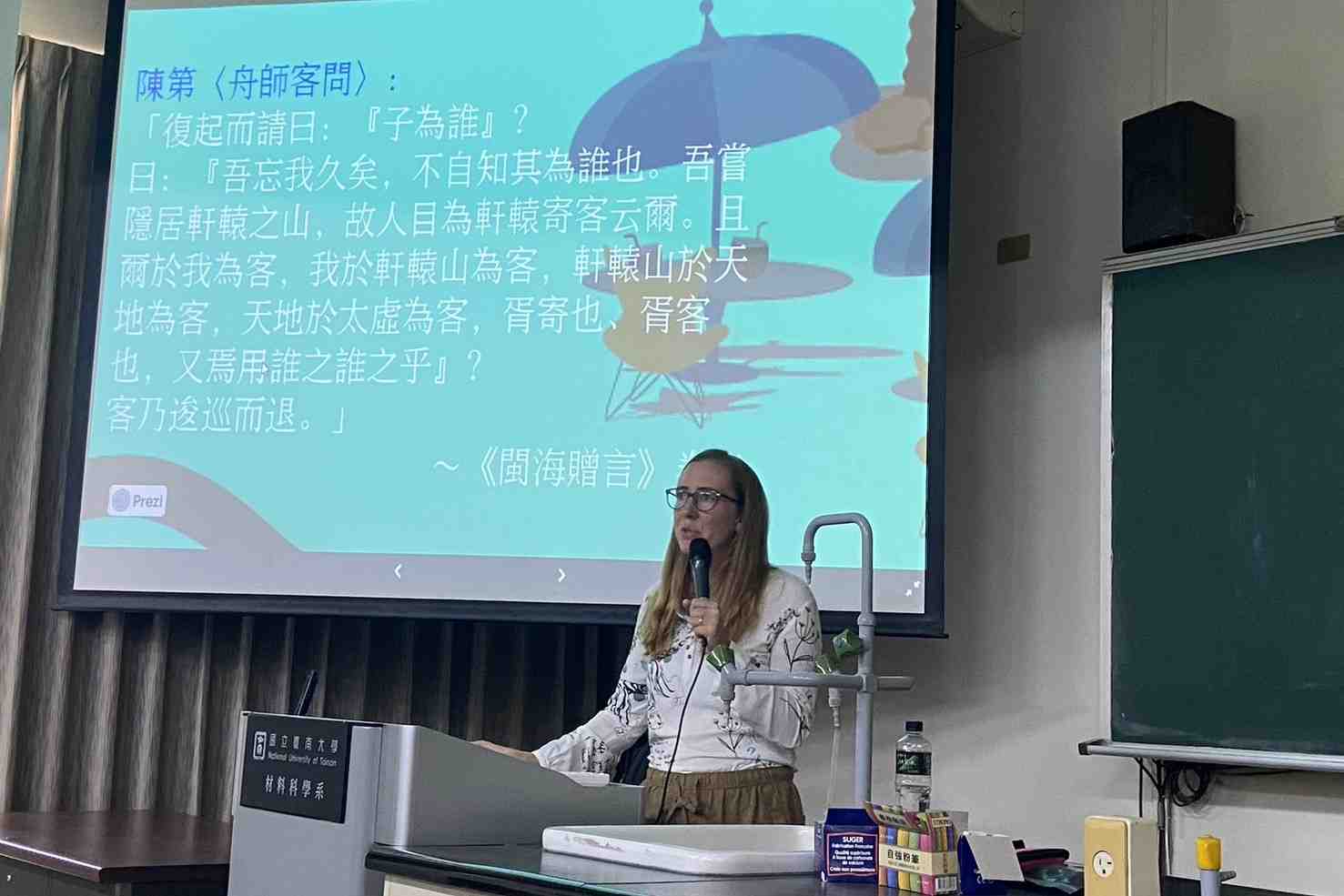 國立臺南大學國際事務處於114年10月15日邀請來自美國新墨西哥州的學者暨創作歌手克麗絲叮.韋欣 (Christine I. Welch) 博士蒞校演講,主題為〈終極異己—克麗絲叮的尋尋覓覓:來自美國的學者與創作歌手眼中的平埔族女巫〉,吸引眾多師生參與。韋欣博士能以中文與聽眾交流,展現跨文化學者對語言與文化的敏銳感受,也讓人聯想到近期網路節目《中文怪物》掀起的討論—語言學習的過程,其實也反映文化的差異與理解的界線。