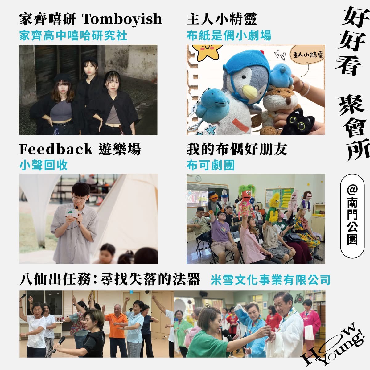 文化局指出,活動當日在南門公園同步推出「好好看聚會所」,集結多元藝文體驗與互動展演。包含家齊高中嘻研社、洄瀾舞集、布可劇團、布紙是偶小劇場、南飛.嚼事一人一故事劇團、米雪文化、藝文沙龍偶戲志工及鄉城歌仔戲團等團隊,共同展現藝術跨越年齡與族群的能量。現場另有臺南高商莫嘉賓老師帶領粉筆彩繪創作,新藝獎得主小聲回收舉辦聲音互動工作坊,並邀請多所臺南地方文化館共襄盛舉,出動行動展示攤車一同逛大街。更多活動資訊請上臺南藝術節官方網站:https://tnaf.tainan.gov.tw/或臉書粉絲專頁查詢。