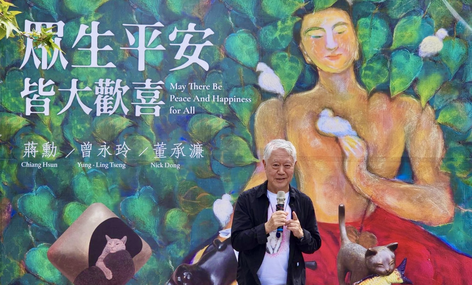 臺南市副市長葉澤山表示:感謝蔣勳文教基金會與和通文化藝術基金會攜手,推動水交社文化園區日式宿舍常設展的規劃與內容提升,也感謝蔣勳老師提供珍貴作品。本次以「眾生平安,皆大歡喜」為展名,滿是貓咪的創作令人會心一笑,深具療癒氣息,搭配AI 互動體驗,使整體展覽既溫暖又新穎。誠摯邀請全國民眾走進臺南,在靜謐的書房中,感受三位藝術家的創作魅力,也感受臺南文化底蘊與水交社之美。
