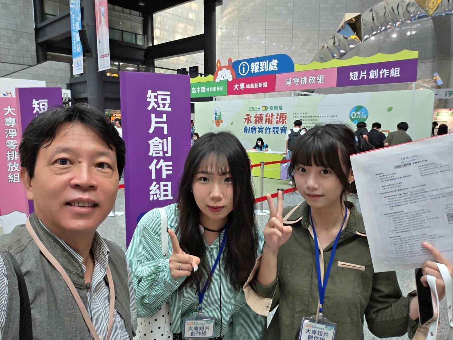 由教育部指導、國立科學工藝博物館主辦之「2025臺灣能─永續能源創意實作競賽」,10月26日在高雄國立科學工藝博物館舉行決賽暨頒獎典禮。崑山科技大學資訊傳播系三年級郭芷岑、陳翰儀兩位同學表現出色,於「大專短片創作-淨零綠生活組」榮獲銅牌獎,並獲頒獎金新臺幣15,000元。