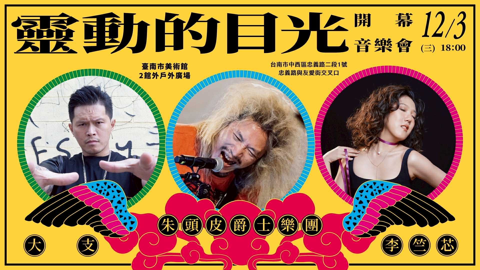 首先登場的是12月3日(週三)晚間6:30的光雕音樂會,以「站在這裡,這裡就是家」為主題,匯聚跨界卡司:金曲台語歌后李竺芯、饒舌教父大支以及朱頭皮爵士樂團聯合演出。朱頭皮並將擔任主持人,以台語旁白串起音樂與光影的節奏。