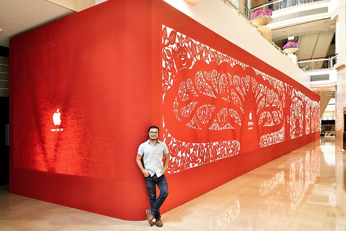 ▲ 因為理念相近,Apple_Store邀請楊士毅創作「有閒來坐」,長達75公尺,全世界最長的剪紙作品,代表著相聚的力量,讓相聚的每個人能走到更遠的地方。(楊士毅提供)