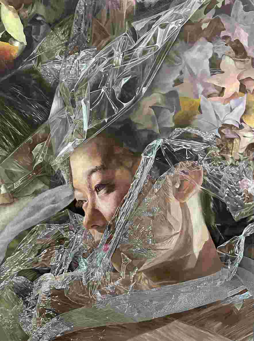 榮獲今年國泰銀獎的南應大美術系王姿婷同學,超寫實畫功令人驚艷不已,其作品以「與無聲的壓力一起睡覺」作為隱喻,描繪一種長期共存但無法言說的心理狀態。那些來自家庭、社會、期望、自我要求的重量,從不吵鬧,也不會爆裂,它們靜靜地待在生活的縫隙裡,像夜裡的影子——你以為自己已經習慣了,但身體卻在每一次呼吸裡記得它們的存在,作品除了深刻的意涵,亦表現出寫實細膩的精湛畫技。