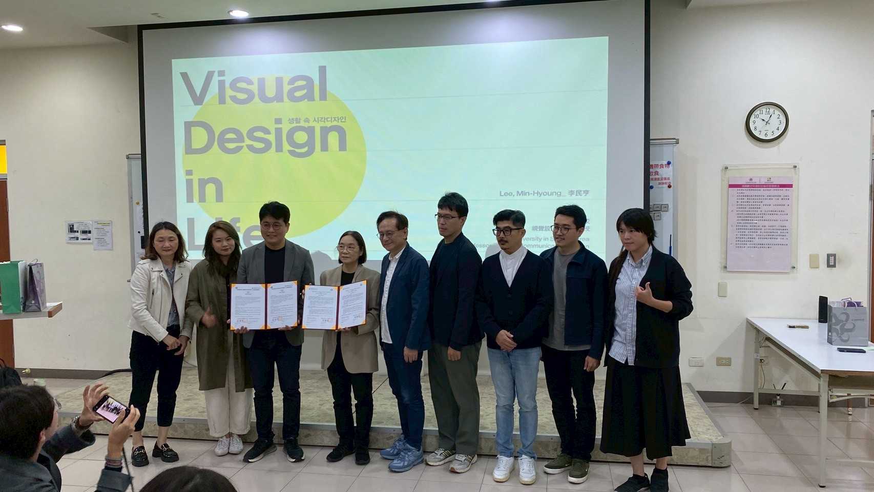 台南應用科技大學視覺傳達設計系於11月28日 舉辦國際設計交流講座,特別邀請韓國仁德大學視覺傳達設計系李民亨(Lee, Min Hyoung)教授及韓國現代設計協會(KECD)李佳樺副理事長蒞校演講。兩位講者以韓國近年備受注目的「設計 × 生活文化」發展為核心,從視覺文化、潮流美學到國家軟實力的培養,帶來一場兼具深度與國際視野的精彩分享。