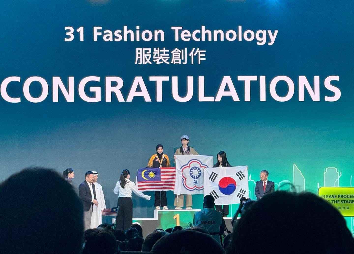 台南應用科技大學服飾設計管理系大四學生蕭妤珊,畢業於三民家商服裝科,高中時榮獲全國家事類技藝競賽服裝設計組第三名,上大學後大一參加第53屆全國技能競賽獲服裝創作組佳作,大二時獲得第54屆全國技能競賽服裝創作金牌,經過競爭激烈的國手選拔賽,大四成為正選國手,在這次亞洲賽中脫穎而出,奪下服裝創作職類金牌,以卓越工藝與穩定台風獲得評審高度肯定,成功為台灣技職教育寫下耀眼紀錄。