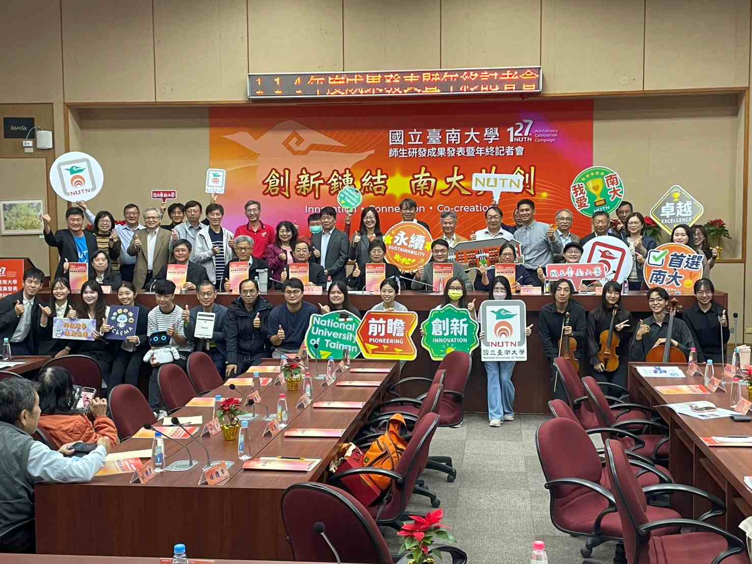 臺南高教首府例辦記者年終會,大學名登一流展陳教研成果豐。又是年終歲杪,為展示一年來師生教學研發成果,堪稱是國小師資培育搖籃的國立臺南大學,12月8日舉辦「師生研發成果發表暨年終記者會」,發表六學院教研成果,呈現南大在跨域整合與公共參與上的實質績效,豐碩亮麗,倍受矚目。