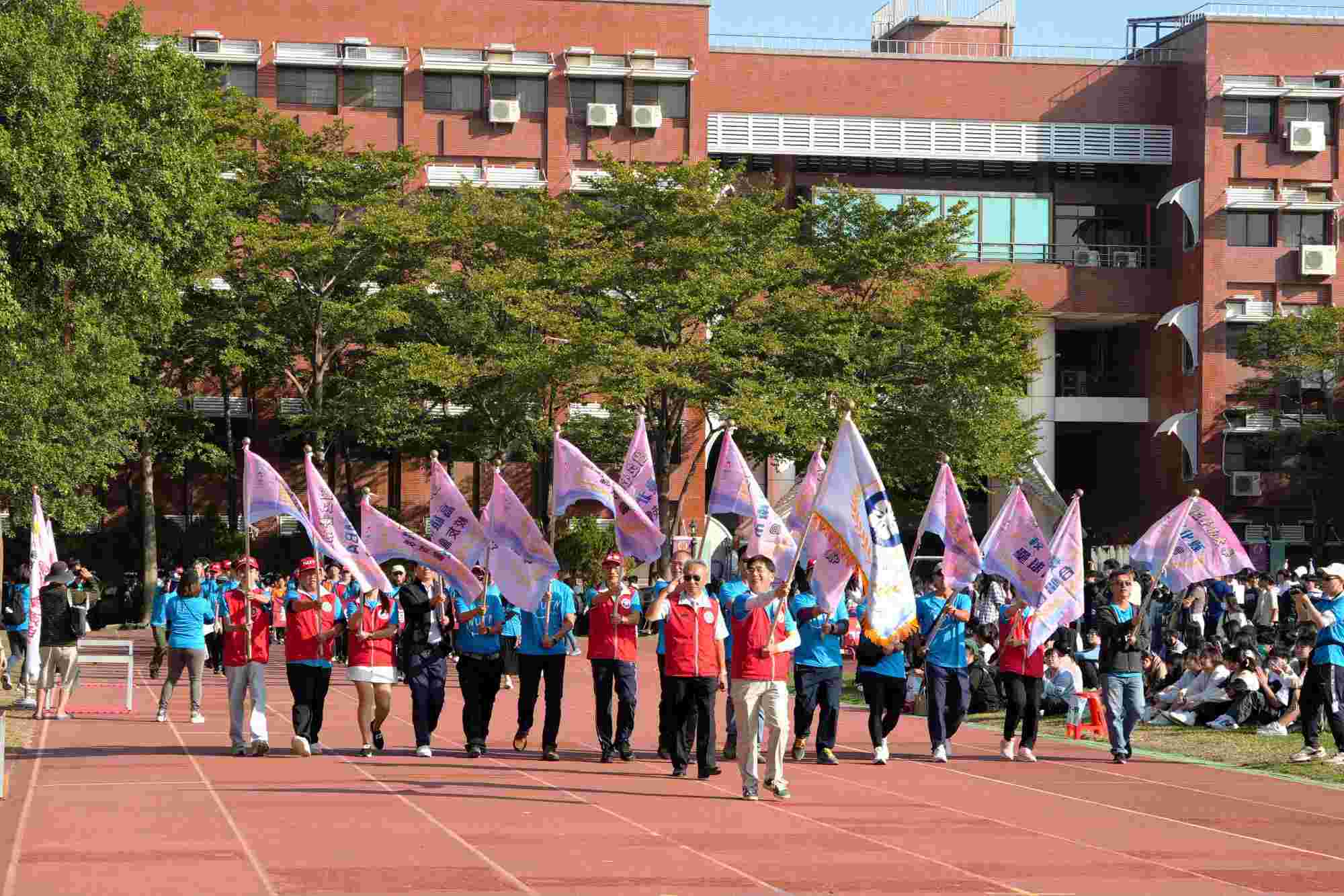 今年的運動員進場隊伍十分多元,包括教職員工隊、校友聯隊、僑生聯誼會代表,以及六大學院、學系與創意參演班級。各系同學精心設計造型與進場隊形,展現團隊特色與創意巧思,隊伍依序登場時,現場歡呼聲不斷,充分呈現南大在校慶期間的凝聚力與參與感。