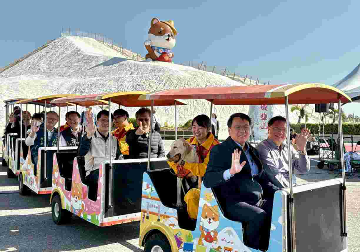 七股鹽山17日舉行「柴鹽滾滾鬧新春-鹹DOG DOG登場」記者會,由臺鹽公司董事長丁彥哲、總經理李杰翰連袂邀請交通部觀光署雲嘉南濱海國家風景區管理處處長徐振能、台南市政府觀光旅遊局副局長鄭道立、台南市政府消防局特種搜救隊大隊長謝榮仁、七股區公所祕書黃瑞琳、七股區鹽埕里里長謝勝江等貴賓齊聚,共同見證「萌」勢力;眾人手持打氣筒進行趣味十足的「補柴(財)氣」啟動儀式,為柴犬裝置注入能量,寓意「一起打滿好運」,也替七股鹽山新春旅遊熱鬧暖身。
