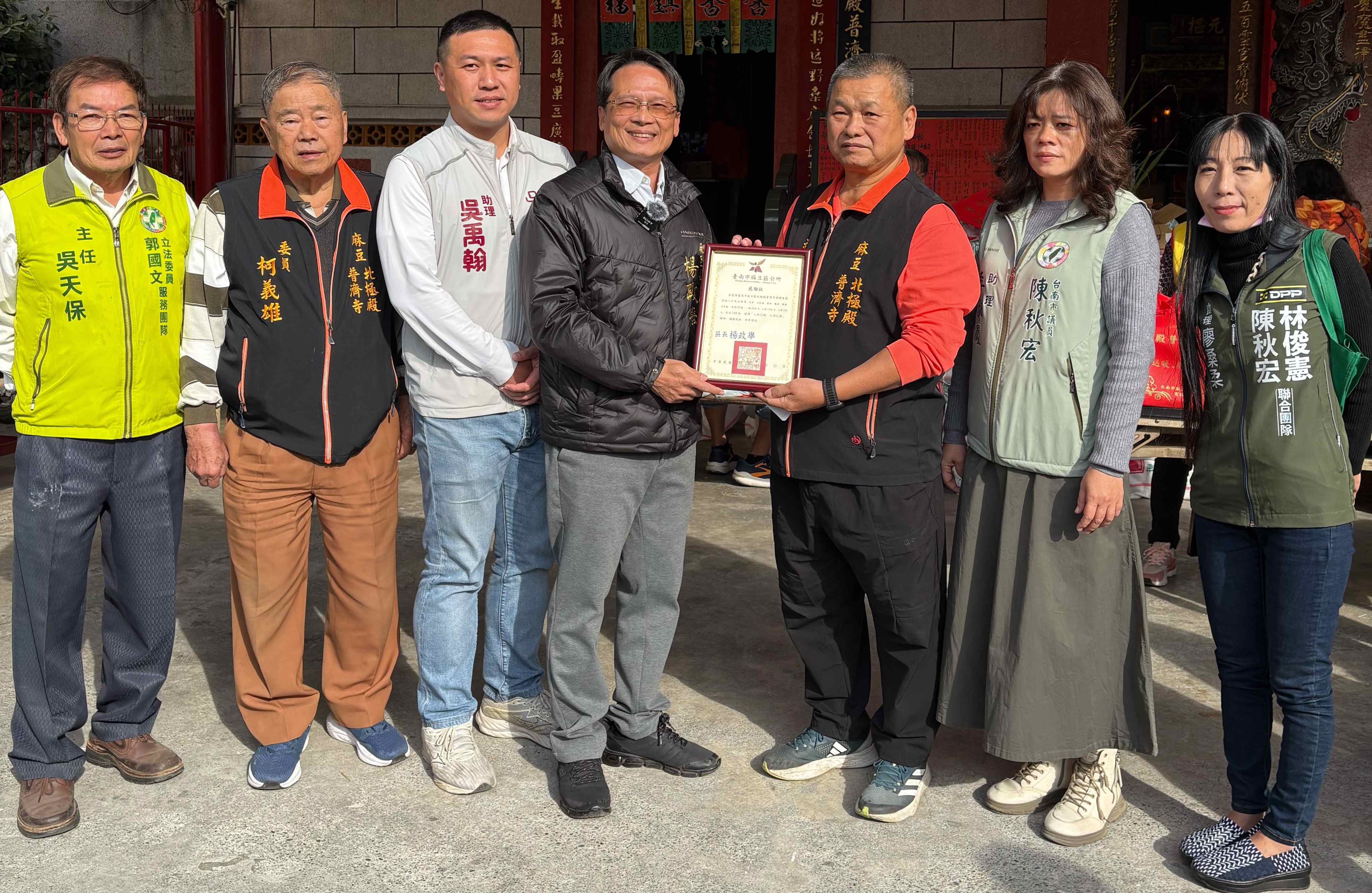 麻豆北極殿普濟寺1月11日舉辦115年寒冬送暖活動麻豆北極殿普濟寺主任委員郭丙火、副主委張德福、總幹事謝依燕與理監事及諸委員11日上午均到活動現場服務,麻豆區區長楊政舉、立委郭國文、林俊憲、賴惠員及陳亭妃秘書黃麥兒、市議員吳通龍、陳秋宏及尤榮智秘書尤淨寬等也前往關心,嘉勉工作人員之辛勞,並肯定北極殿普濟寺之善舉,期盼透過此活動拋磚引玉,有更多單位及善心人士共襄義舉,幫助社會上的弱勢家庭。