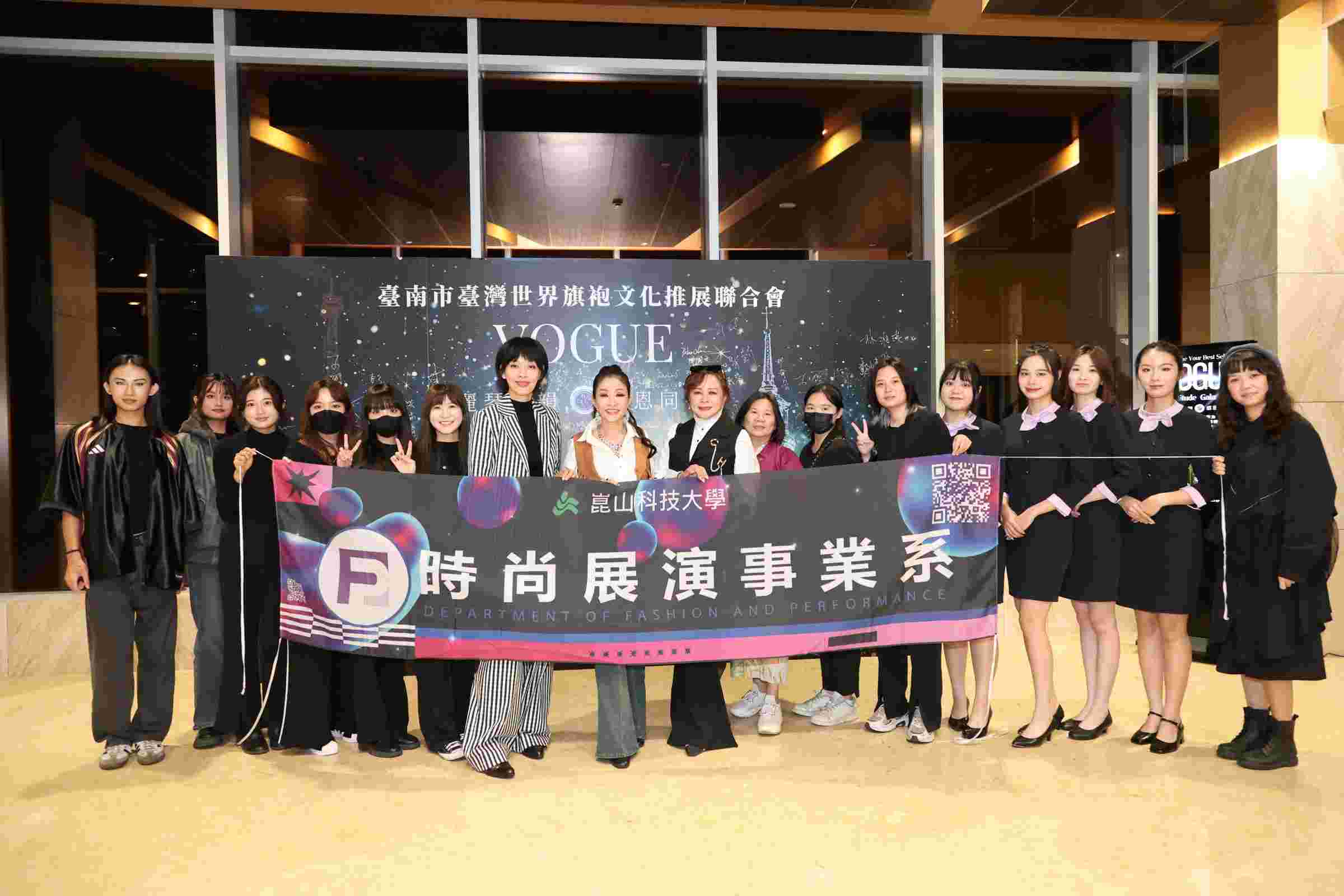 該次晚宴由知名聲樂家陸震老師拉開序幕,演唱〈You Raise Me Up〉與〈鬥牛士之歌〉兩首動人樂章,帶來鼓舞人心的演出,在時尚系王聖芬主任的精準節奏掌控下,從律動感十足的開場舞〈逮捕〉到核心的「27人VOGUE主秀」,每一環節都展現出國際秀場的精緻質感。活動更與台南市台灣世界旗袍文化推展聯合會(簡稱台南世旗協會)合作,由時尚系師生團隊親自為被暱稱為「旗姐」的協會成員們打造舞台造型與走秀設計,透過服裝美學與專業展演在舞台上綻放自信光采。