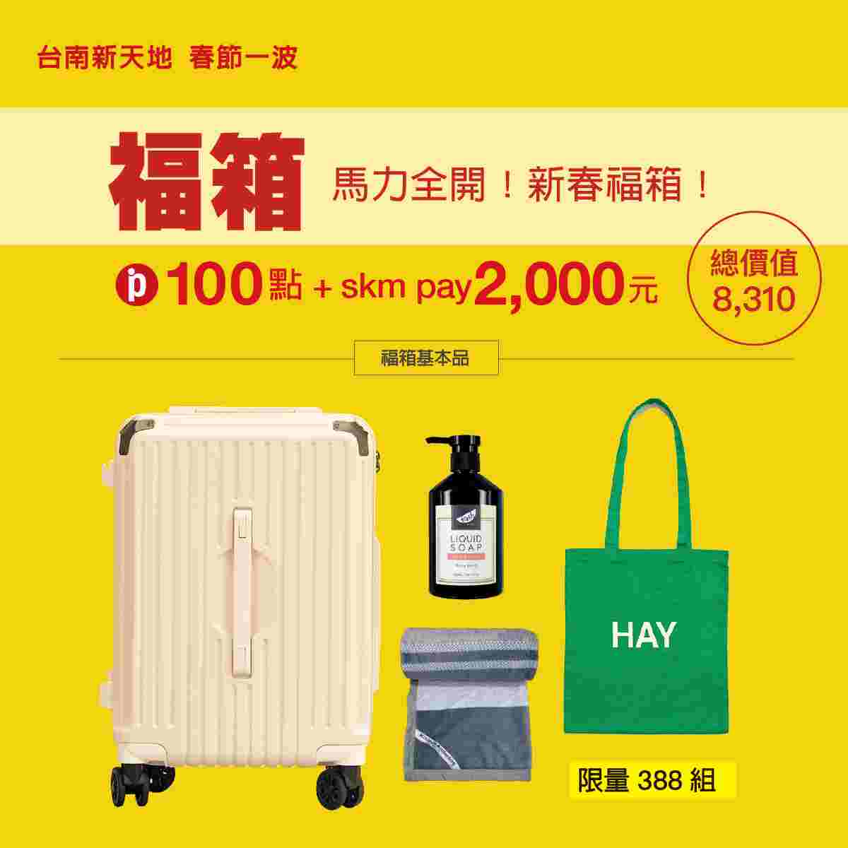 光三越今年春節特別聯手時下紙雕藝術家-成若涵,以環保再生材質搭配創作紙雕馬,打造充滿喜氣的新春福袋!今年大年初一,新光三越特別規劃以環保永續為概念,採用環保再生材質,並推出可折疊收納、方便隨身攜帶的【馬載而歸吉祥福袋】福袋內含多款實用且富有春節氣氛好禮,包括《金安德森 米拉抗菌壓縮枕》、《SNAPWARE康寧Eco Ren陶瓷保鮮盒》、《掌廚CREAMY不沾鍋20CM煎炒鍋》、《HETRAS 首席調香師香氛噴霧1入》及《RUBBY手作千層蛋糕100元折抵券》;以及呼應時下旅遊熱潮,推出超級能裝行李箱【馬力全開新春福箱】,包含《荷柏園 烏木玫瑰液態皂500ml》、《金安德森 法蘭絨舒柔毯》、《HAY Tote Bag 綠色/海軍藍》!大年初一新春福袋(限量288份)、福箱(限量388份),消費者可於2/6(五)上午10點起,透過新光三越APP扣100點skm points、並使用skm pay刷指定金額,就能將一整年好運氣帶走!今年新光三越也特別呼應台灣民眾對於美食的熱情,台南新天地再加碼!凡購買福袋或福箱,再加贈JMT韓式炸雞年糕+韓國烤肉飯兌換券、豐舟餐飲贈品券!欲參與的會員需提前下載APP並綁定貴賓卡及SKM Pay,確保在開搶時順利下單!