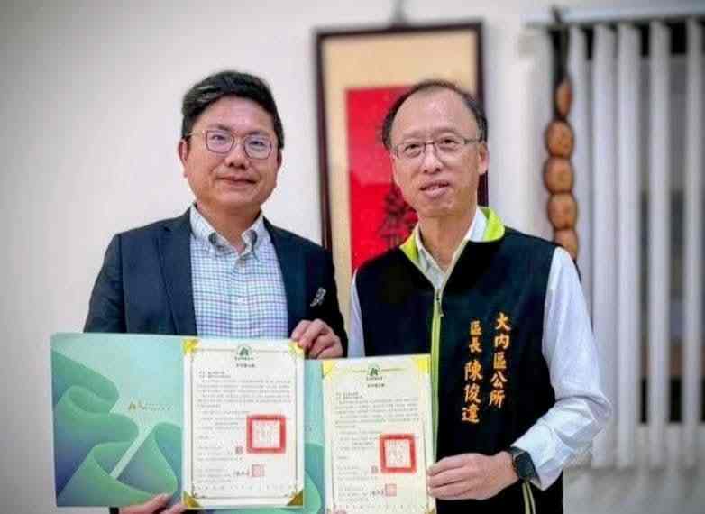 ▲ 崑山科大深耕型USR計畫落地大內區,大內區陳俊達區長(右)與崑山科大楊泰和學務長(左)簽署合作備忘錄