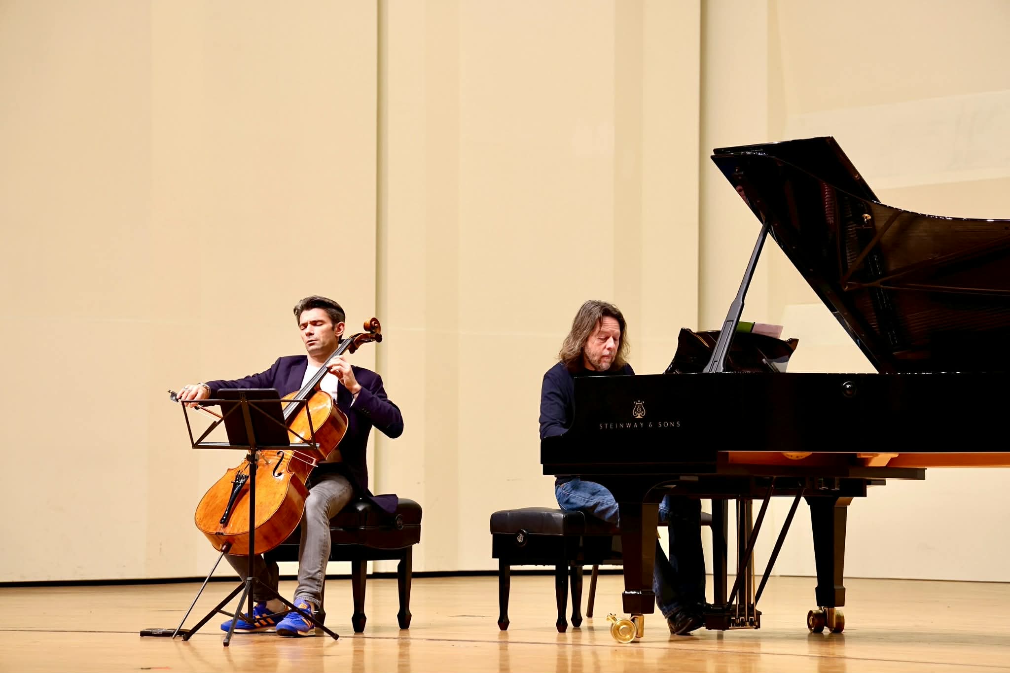 ▲ 2026台南國際音樂節開幕演出由國際大提琴巨星高提耶・卡普松與鋼琴家法蘭克.布雷利攜手演出,琴音於台南文化中心悠揚迴盪,為音樂節揭開動人序章。