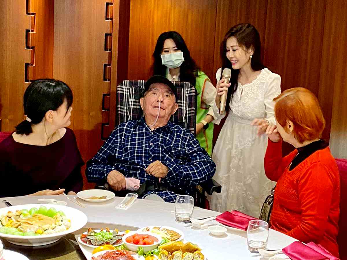 ▲ 愛心大使董育君獻唱植物人阿安一家,場面溫馨感人