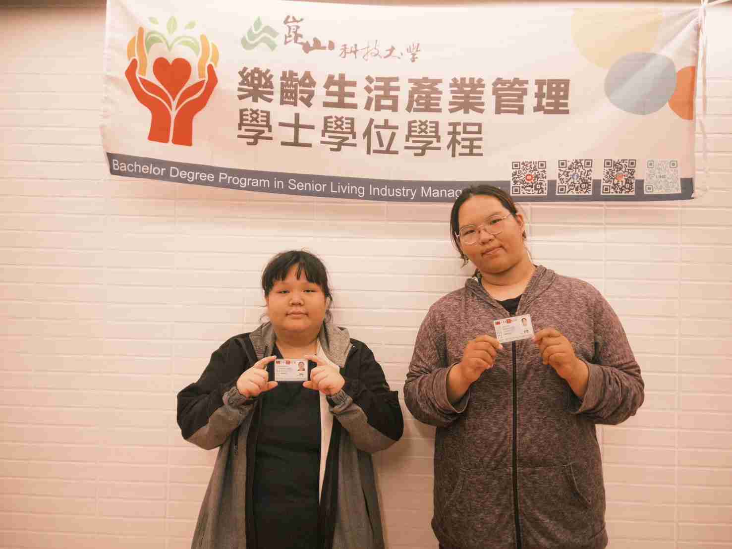 ▲ 樂活學程日間部三年級陳嬿珍(左)、許昭雯(右)考取國家級單一級照服員技術士證照
