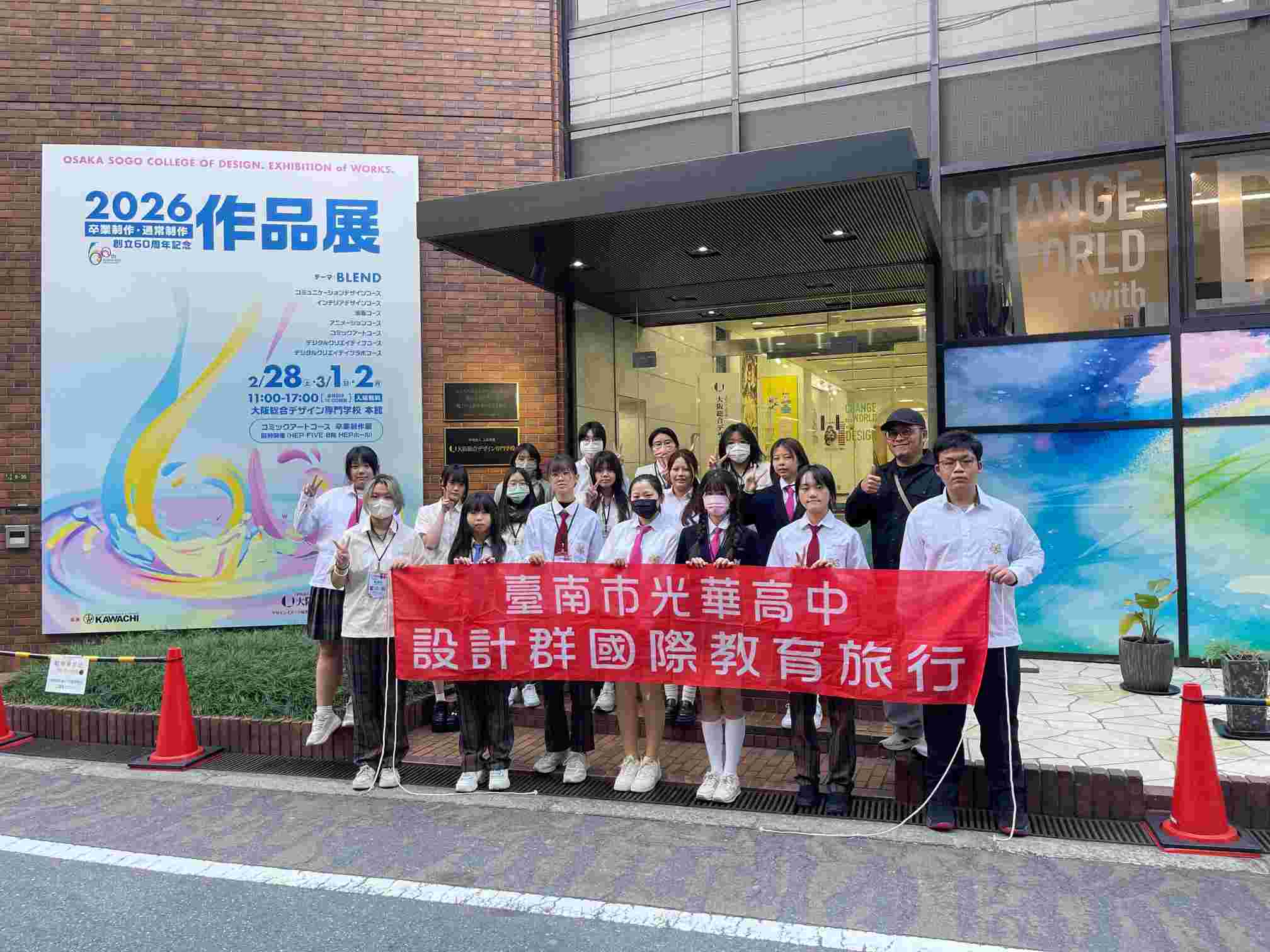 同樣進行七天海外教育旅行的多媒體設計科,則由蘇仁傑老師領軍前往日本大阪,展開一系列創意技能體驗課程,包括動漫電繪、角色表情設計與精緻手工包裝製作等。設計群卓沂蓁同學更將學習歷程剪輯成Vlog,上傳至個人社群,展現學習成果與創意能量。讓人看見旅行歸來的孩子們神采飛揚,閃耀著自信與成長的光芒。