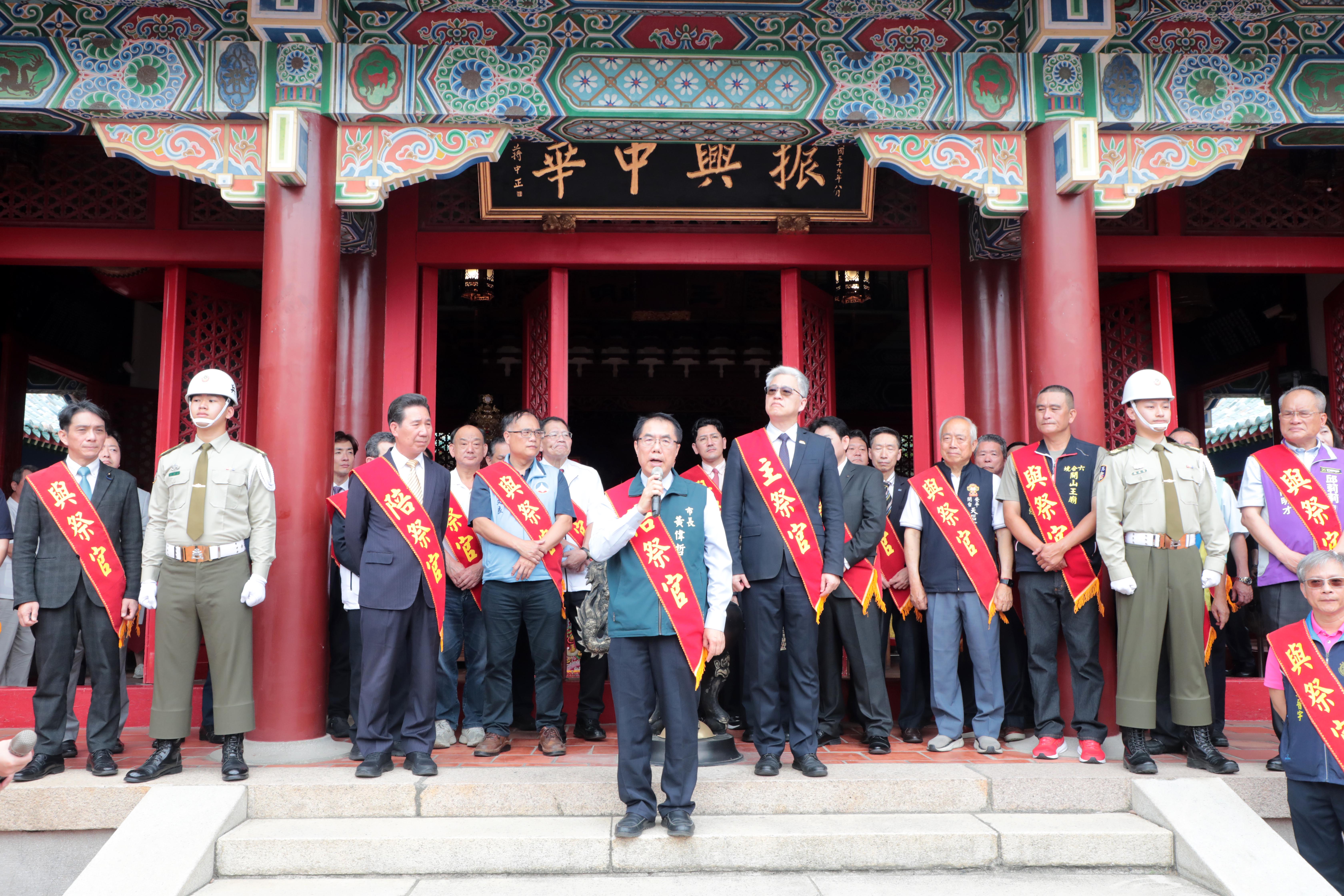 黃偉哲致詞表示,鄭成功不僅是開台歷史的重要象徵,更奠定台灣發展的重要基礎,帶領台灣進入國際大航海時代,對台灣歷史發展影響深遠。他特別提到,鄭成功母親來自日本平戶,藉由舉辦中樞祭典,向開台先賢表達最高敬意,也期盼延續歷史精神,深化台南與日本、金門及各地的情誼與交流。
