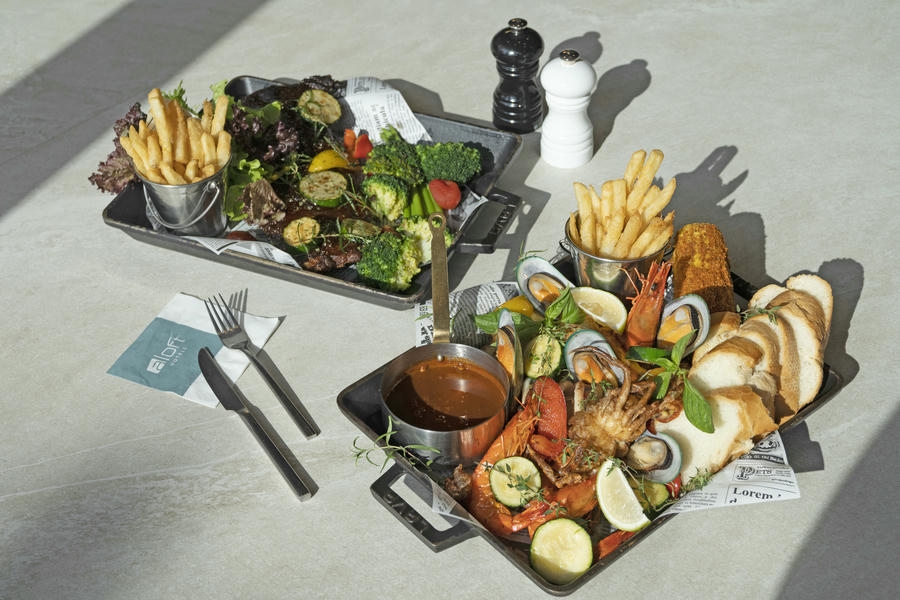 ▲ 拿坡里惡魔醬烤海鮮(前)美式煙燻豬肋排台南安平雅樂軒酒店DEPOT by Aloft充能站全日餐廳新菜登場,將於11 月 1
