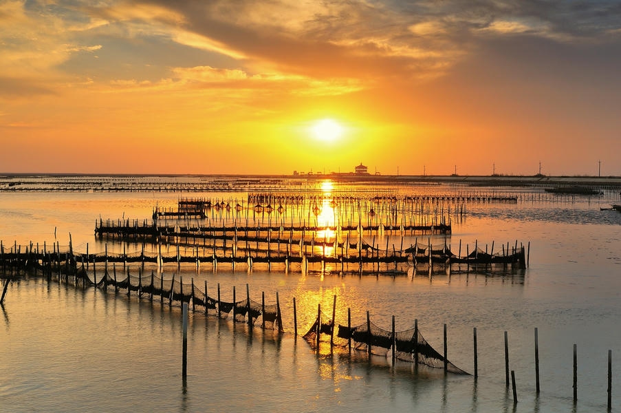 ▲ 夕陽下的七股潟湖美景台江國家公園擁有多樣化的河口、潟湖、潮間帶、魚塭、紅樹林等豐富濕地景觀,園區內河流、水道潮溝交錯縱橫,並是