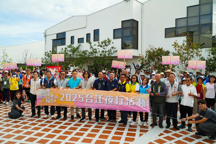 ▲ 貴賓與參加學員合影內政部國家公園署台江國家公園管理處(1)日舉辦「2025年台江夜行」活動,吸引逾400位民眾熱情參與。夜行結