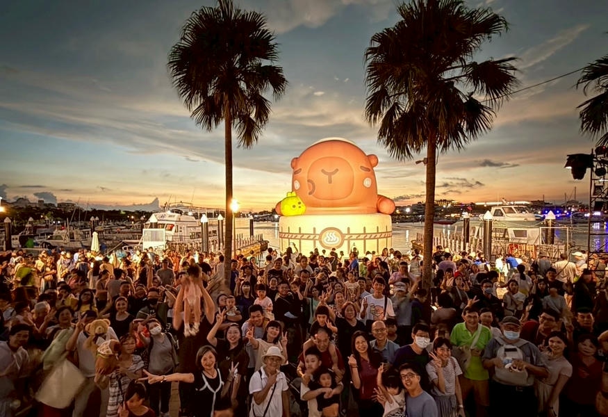 ▲ 2025卡比胖拉出沒注意-參觀民眾與卡比胖拉合照「2025卡比胖拉出沒注意!臺南萌翻天」展期即將進入尾聲,自9月12日展出以來