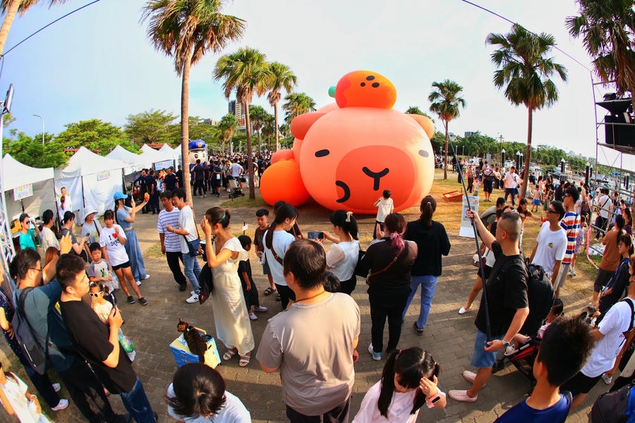 ▲ 03-民眾與卡比胖拉合影由臺南市政府觀光旅遊局主辦的「2025卡比胖拉出沒注意!臺南萌翻天」活動,(13)日在安平漁人碼頭正式