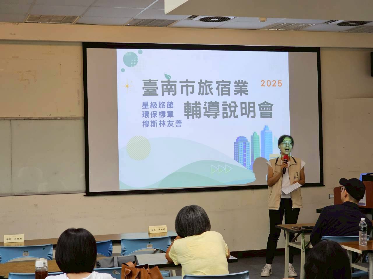 ▲ 星級旅館_環保標章及穆斯林友善輔導說明會-觀旅局凃雅珍專員致詞臺南市政府觀光旅遊局致力打造全方面友善旅宿發展,繼親子友善、寵物