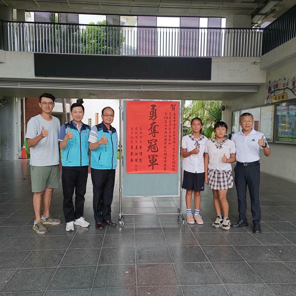 ▲ 安平區蕭泰華區長致贈紅榜慶賀新南國小女軟式網球隊赴日國際賽勇奪冠軍臺南市安平區新南國小女子軟式網球隊代表台灣,前往日本山梨縣參