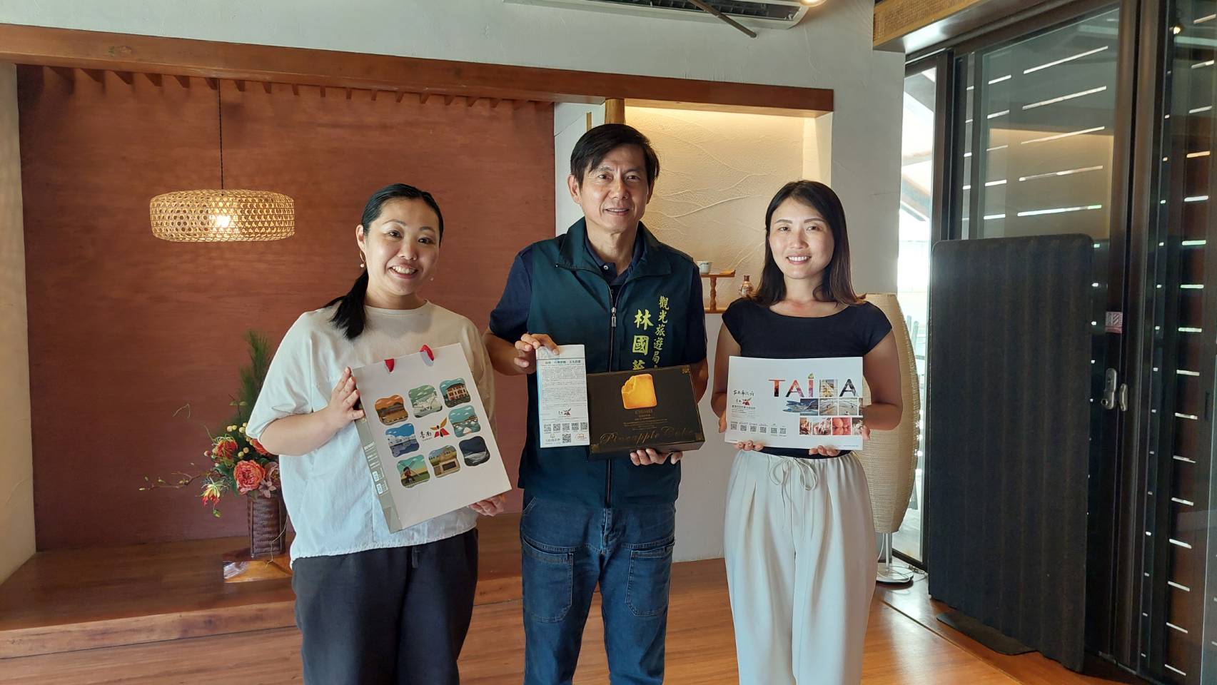 ▲ 1.林國華局長致贈三井海洋郵輪貴賓臺南伴手禮近年來國際郵輪觀光成為交通部推動國際觀光的核心之一,臺南擁有豐富的觀光資源,安平商