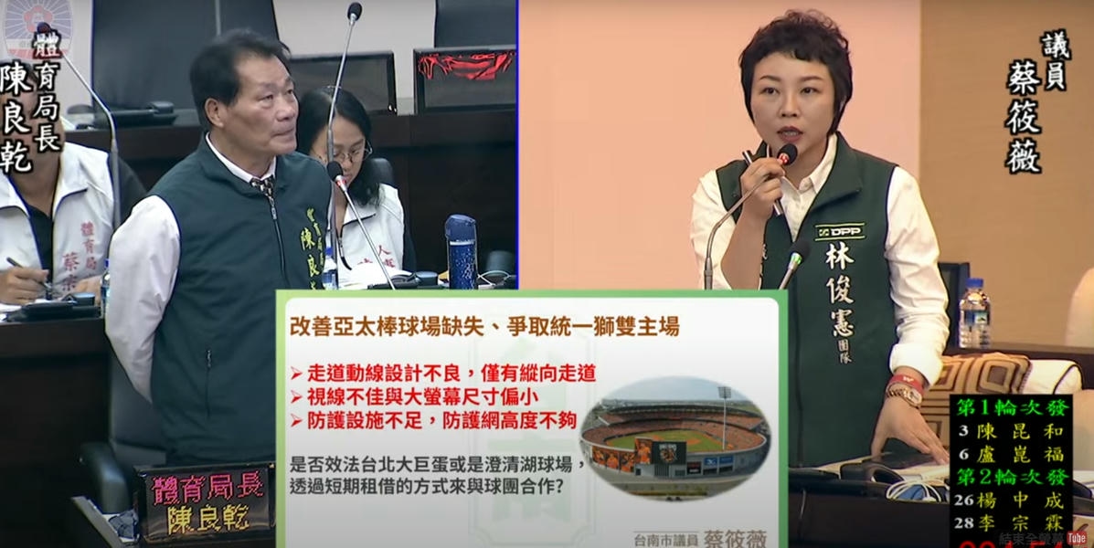 改善亞太棒球場缺失 爭取統一獅雙主場 蔡筱薇籲市府與統一