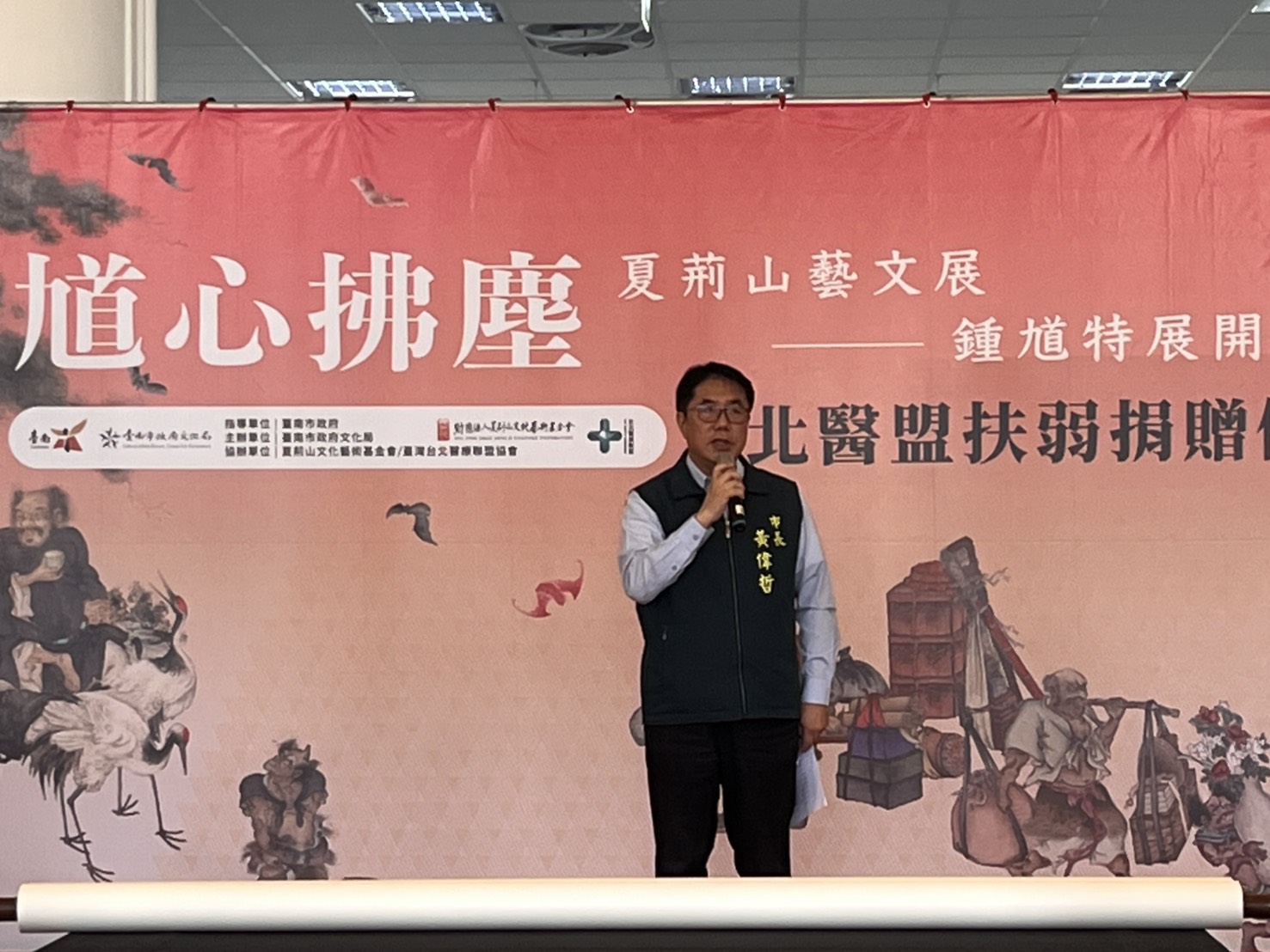 ▲ 《馗心拂塵──夏荊山藝文展鍾馗特展》開幕式暨社福物資捐贈儀式。記者 沈薇/報導臺南市政府今(1)日於曾文市政願景園區致遠樓舉辦