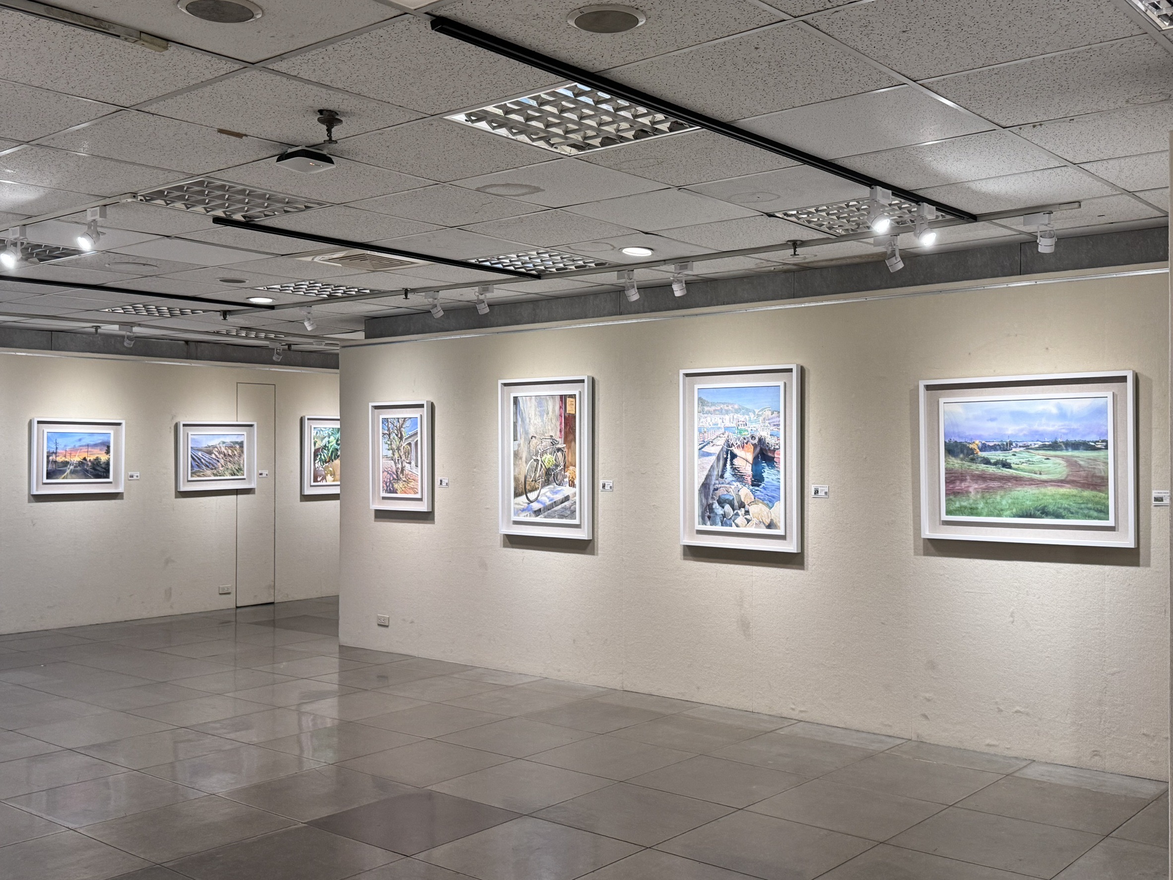 ▲ 展場一隅水彩藝術家蔡岳霖最新創作個展《域外之境》,將於114年8月1日至8月24日,在臺南文化中心第二藝廊展出。本次展覽內容豐